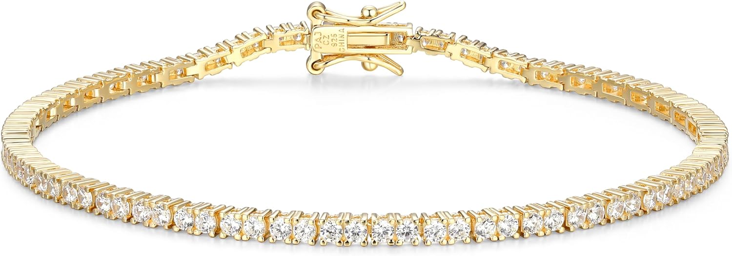 Indulge in elegance with our exquisite sterling silver tennis bracelet, a timeless addition to any jewelry collection. Handcrafted with meticulous care from 925 sterling silver and adorned with high-quality cubic zirconia stones, it radiates beauty and offers enduring dazzle for every moment. Versatile and perfect for any occasion, this stunning bracelet is a symbol of refined sophistication. Crafted with hypoallergenic, tarnish-resistant materials, it's plated in platinum, yellow gold, or rose gold, ensuring safe wear for all skin types. Presented in a beautiful soft pouch and jewelry gift box, it's the perfect gift for birthdays, anniversaries, or Mother’s Day. Backed by a 30-day money-back guarantee return policy, shop confidently with us today!
