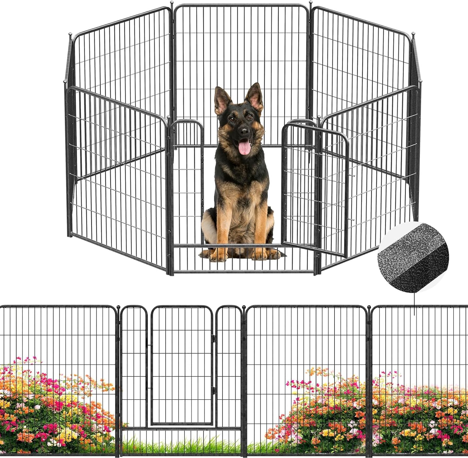 | Included Components | 1x Panel with Door, 7x Standard Panels, 8x Anchor Stakes |